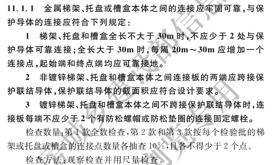 2. 两节桥架连接可不用跨接线:若两节桥架的连接片两端,至少采用2个固定螺栓紧固,能确保节间导电顺畅,则无需额外加装跨接线。